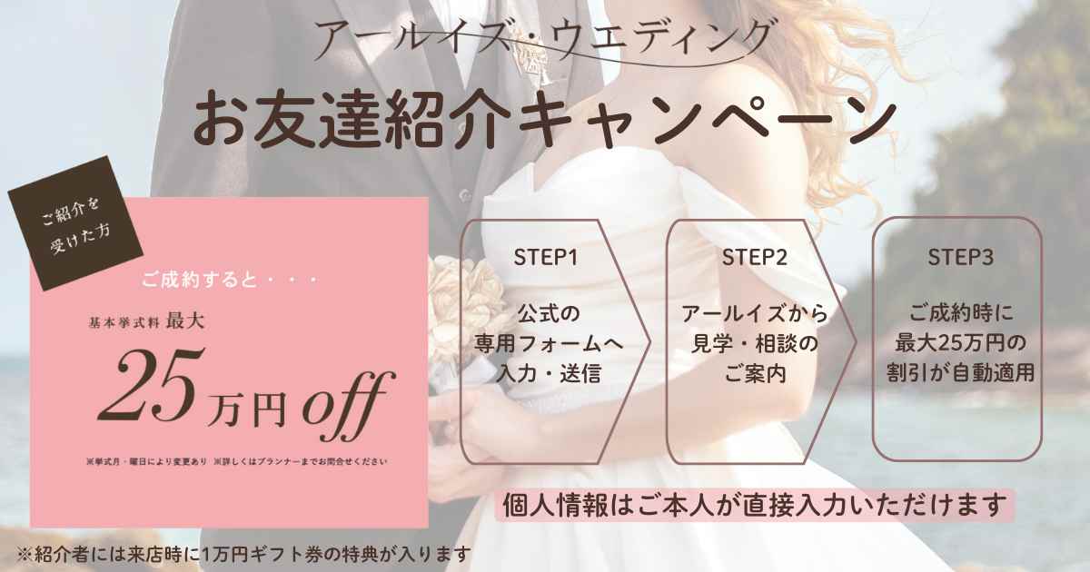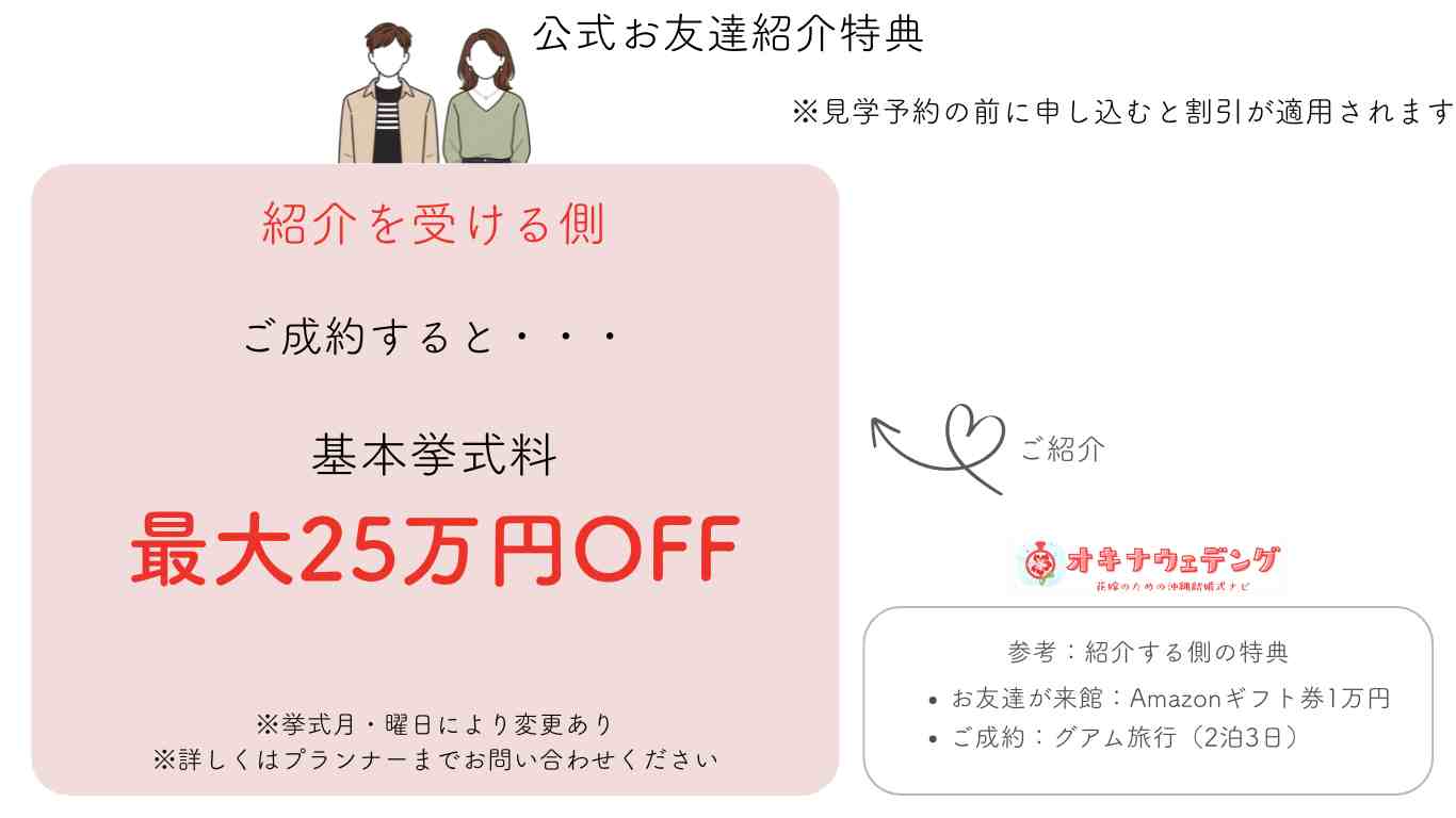 同じ条件で結婚式を挙げるなら、友達紹介の割引を使った方が断然お得です。